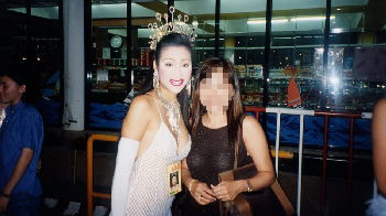 | タイは、おかまちゃんでも有名とか…。 そう言えば、おかまちゃんのキックボクサーがいましたね。 サイモンキャバレーと言うところに、レビューを見に行きました。 ショーの後、美女(?)が外でお客さんを待っています。 主役級のおかまちゃんと写真を撮りました。 口は笑っていますが、「チップ、チップ」と言ってました。 腹話術か・・・? |