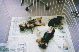 まるで牢獄。いつも前方で吠える子は吠え、後方で 静かにしてる子は静か、性格ですね。 |