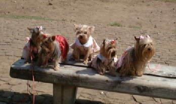 エディママのジュディちゃんとセーラちゃん。 オフ初体験のセーラちゃんはパパの足元に 逃げこんじゃいました。 |